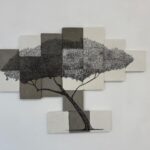 Transferfolie und Acryl auf Leinwand