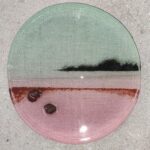 Epoxidharz, eisenhaltiger Sand (Argentinien), Granitstein (Argentinien) und Leinen auf Birnbaumholz